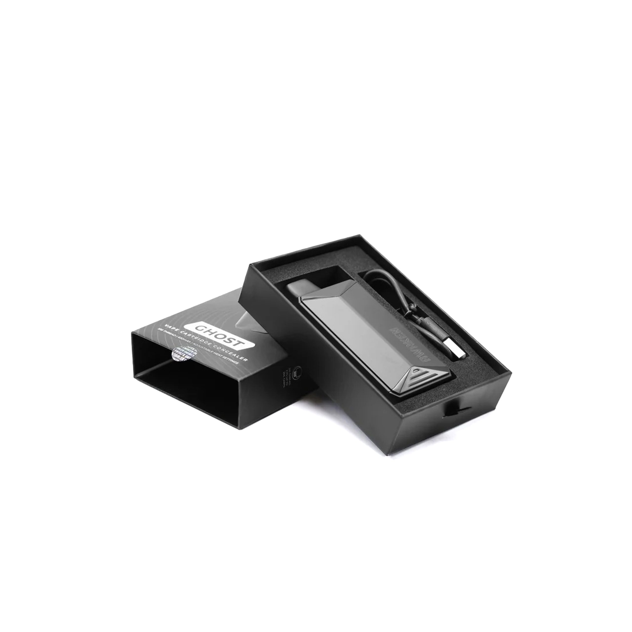 Equipped with adjustable heat settings, the Ghost allows you to fine-tune your vaping experience for smoother flavour, stronger hits, or cooler draws. The device includes a USB charging cable, ensuring quick and easy recharging wherever you go.